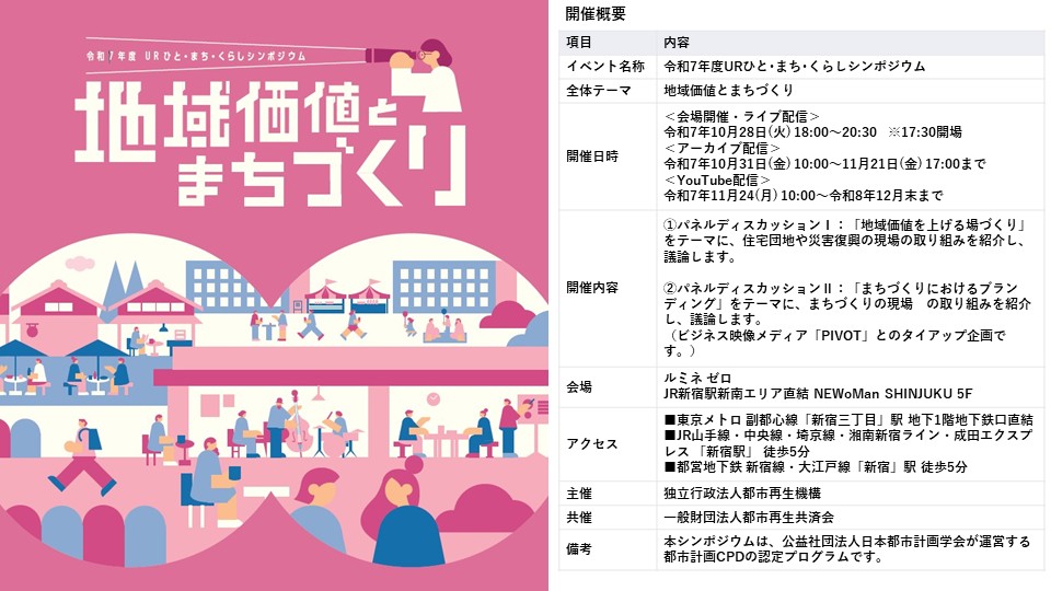 UR 都市機構は、令和7年10月28日に「令和7年度URひと・まち・くらしシンポジウム」を開催します。